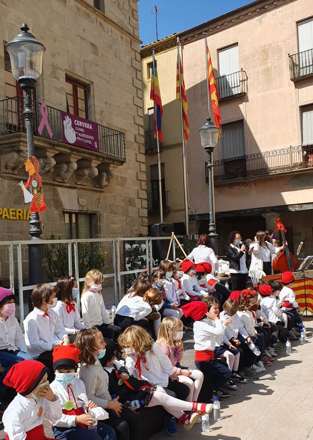 El tercer espai destinat per cantar Caramelles era la plaça Major. La Coral Infantil Nova Cevrvera va dur a terme “petits concerts de Caramelles” cosa que cal agrair molt ja que ens va donar una sensació de més normalitat després que l’any passat, en aquestes dates, tothom estàvem confinats.