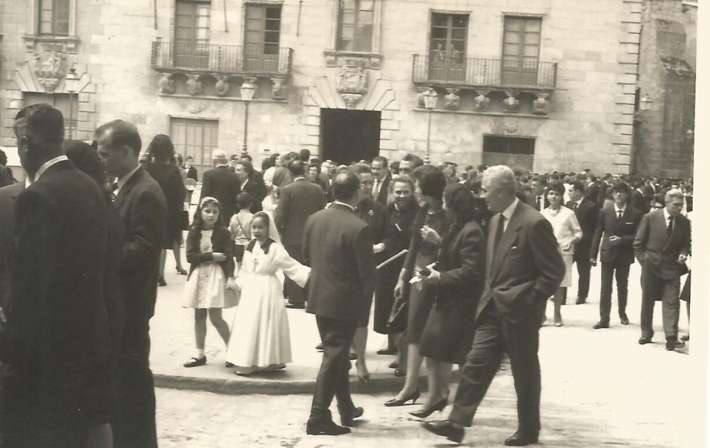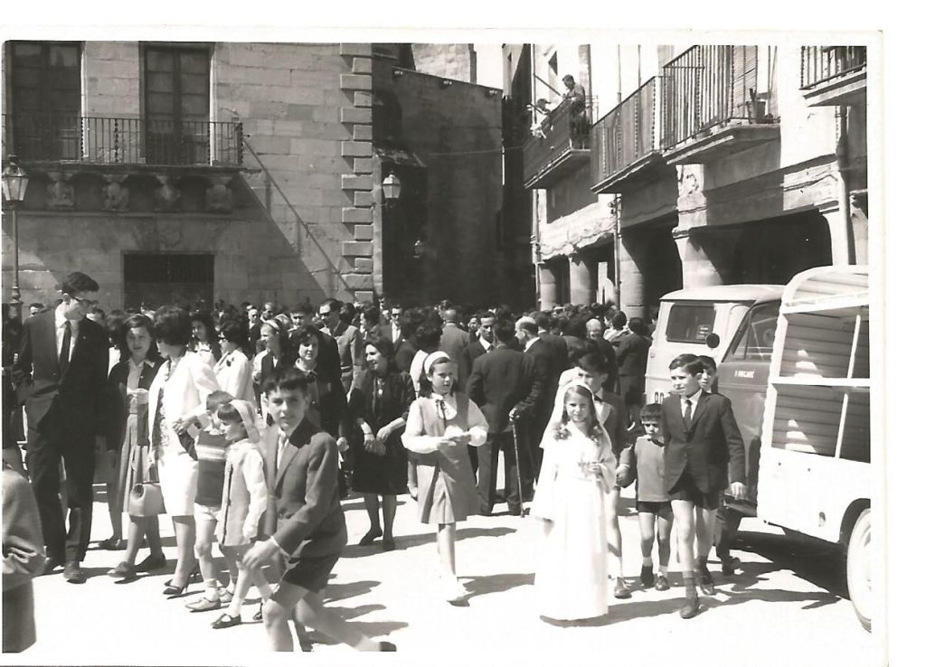 La majoria de fotografies estan tirades mentre la gent sortia, desordenadament, de la celebració de Primera Comunió que va tenir lloc a Santa Maria al maig de 1964. Comptant les del post anterior i les d’aquest podeu veure que algunes estan fetes a la plaça Major, un parell al carrer Major i, una altra, davant la Universitat, en el camí de tornada cap a casa dels grups familiars.