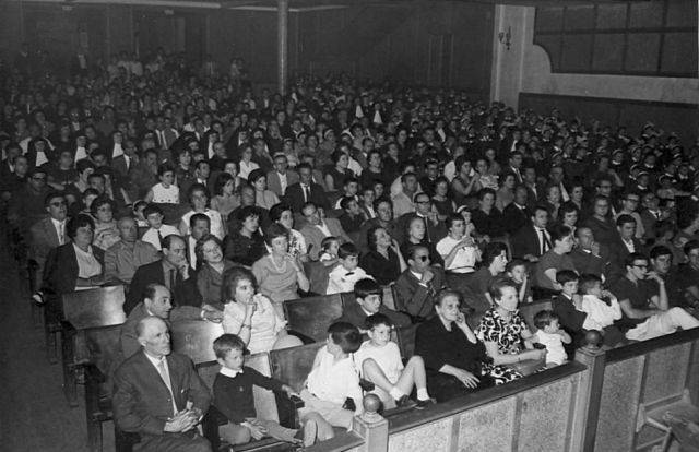 Amb aquesta imatge queda ben clar l’èxit d’aquests festivals. El Testre del Casal quedava ple de gom a gom. Podeu veure entre el públic moltes monges. destaquen per les seves toques blanques. Aquesta fotografia cal mirar-la amb detall perquè hi ha molta gent coneguda. eren els familiars de les i els alumnes que feien les representacions.