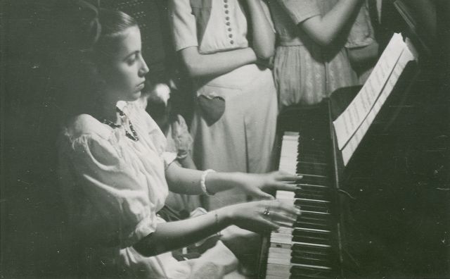 S’ha anat explicant que les representacions tenien lloc en diferents espais. El principal era el propi col·legi. Aquí podeu veure Dolors Carbonell tocant el piano.