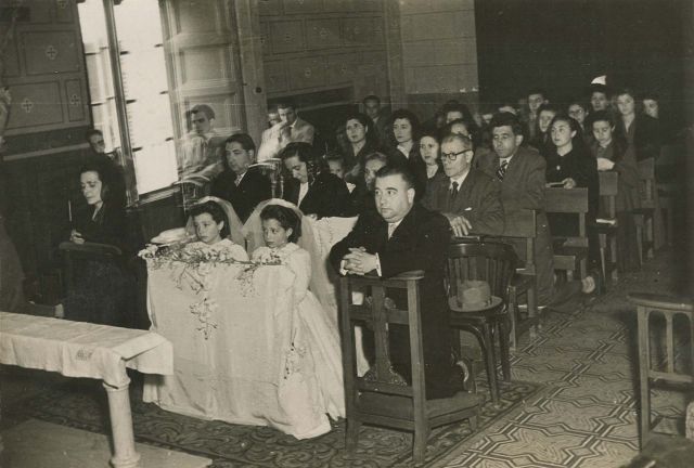 Sembla que en alguna ocasió, molt poques, la capella va acollir una cerimònia privada. Aquestes dues nenes que celebren la seva Primera comunió són Magda i Montserrat Pont. Estan acompanyades dels seus pares, Magdalena i Pere.