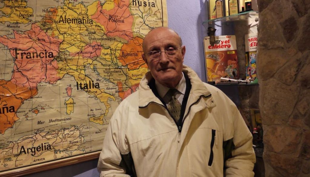 Agustí Batalla posa al costat d’aquest mapa que és del tot vintage. Sempre va ser generós en deixar el que se li demanava. De fet aquest mapa havia esta en altres exposicions.