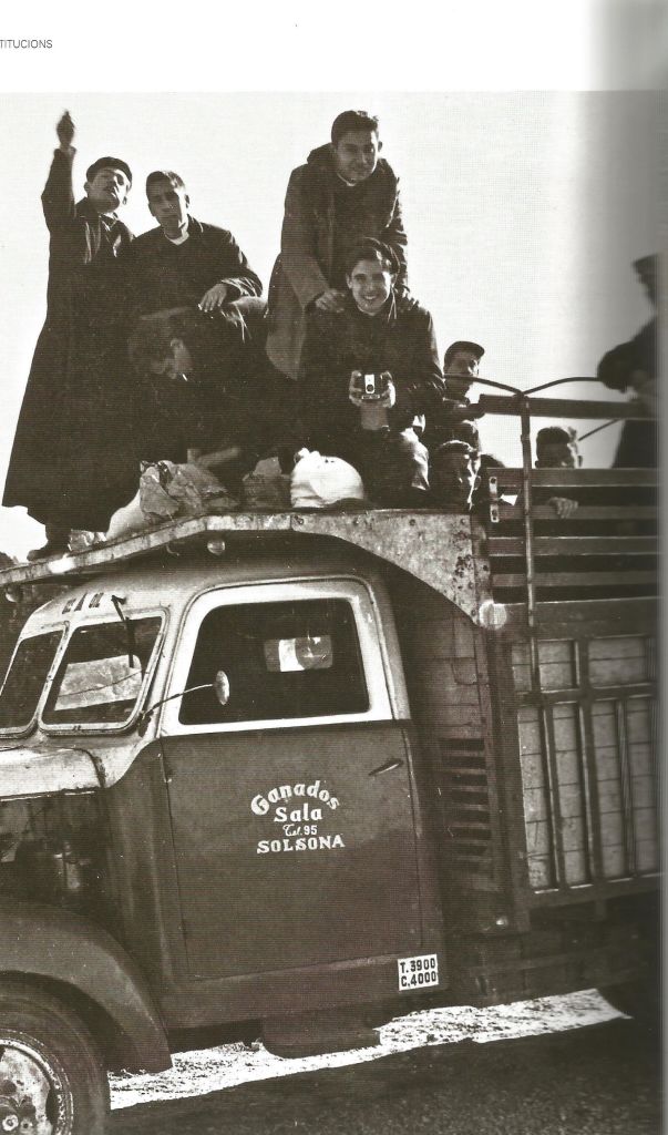 Una altra fotografia compartint amb joves de Solsona en la que es destaquen dels seminaristes per com van vestits. El capellà més alt que està al mig és mossèn Noves . Li deien Mn. Kilòmetre, queda clar per què. Era un capellà que tenia una gran facilitat per contactar amb el jovent i molt fidel al país també. Entre aquests joves hi ha Ramon Llumà que fou Batlle de Solsona durant molts anys. És el que porta la camisa clara. Quan la guardia civil el va denunciar per no penjar la bandera espanyola al balcó de l’ajuntamament va dir que la tenia a la tintoreria. I així cada any.
