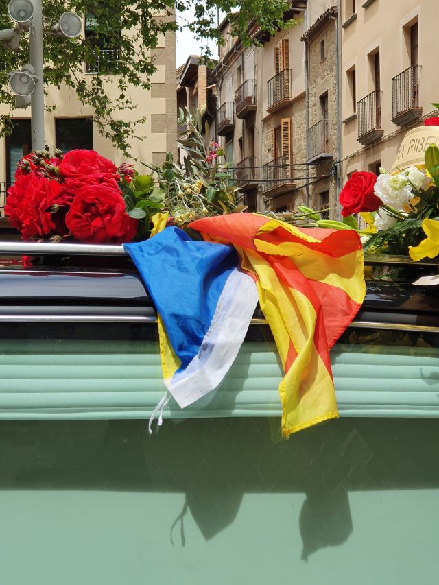 Entre altres rams de flors se n’hi podia veure un de roses que portava una estelada.