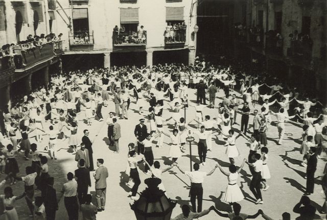 Potser no es compta amb cap fotografia en la que es vegin els balcons tan atapeïts de gent. Sembla que el guàrdia municipal uniformat que es veu a costar de les colles és el Sr. Domenjó.