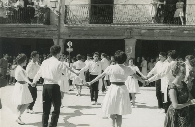 Aquesta fotografia datada l’any 1962 o 1963 està feta a Concabella al començament del concurs, ballant la galop. Són els sardanistes de la colla Jovencells: Miquel Pont, Josep Corbera i Josep M. Armengol. Ja s’hi han incorporat altres joves: Rosina Quintana, amb molta gràcia, marca el passos del galop fent voleiar el mocador que porta a la mà. Al seu darrera hi té Carme Pedrós.