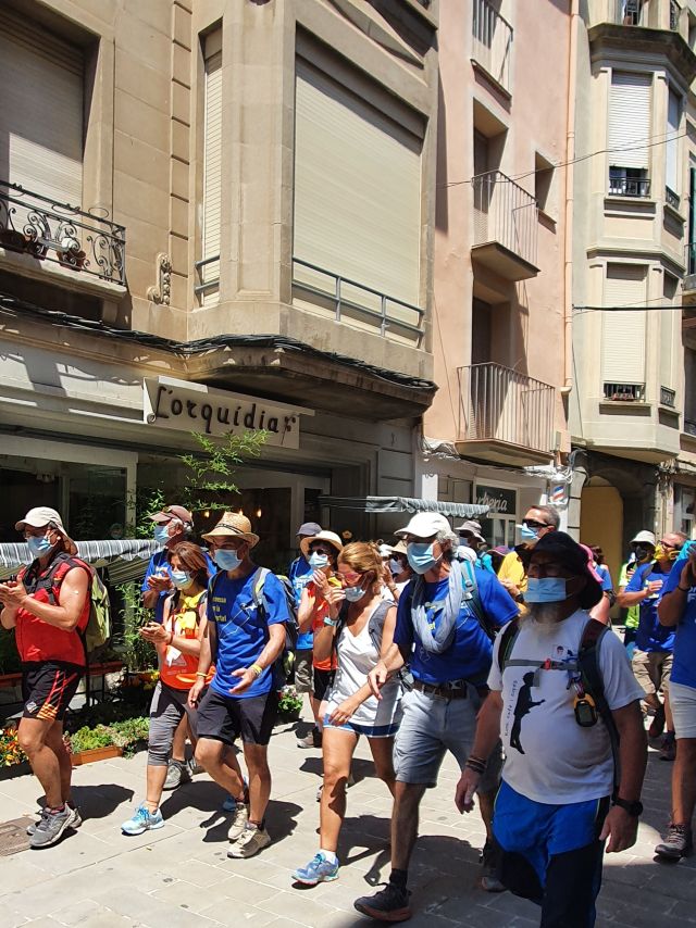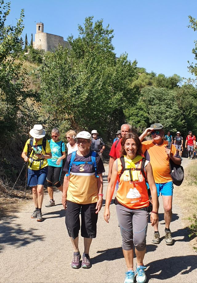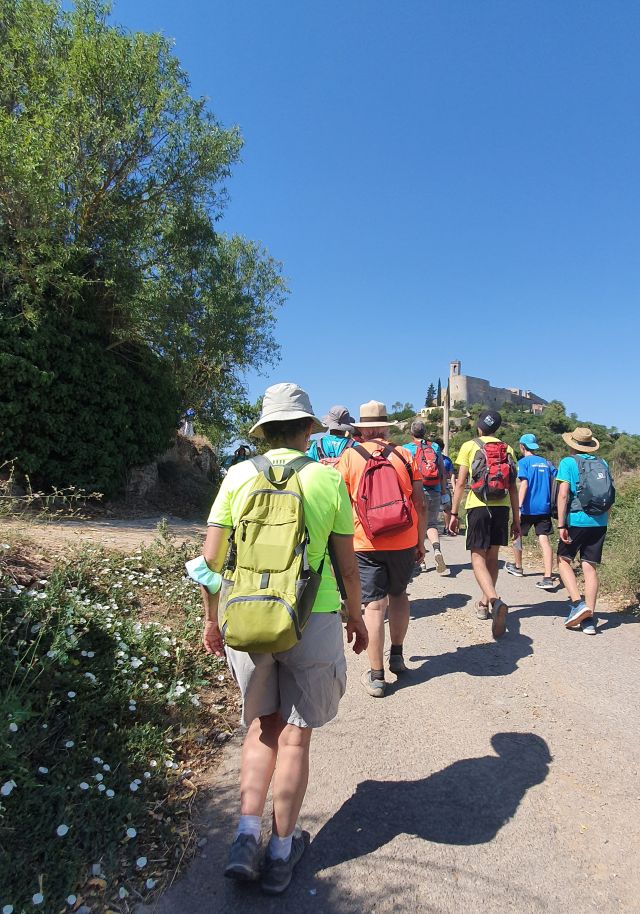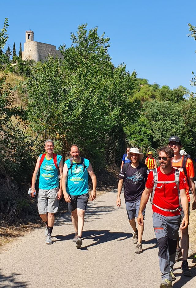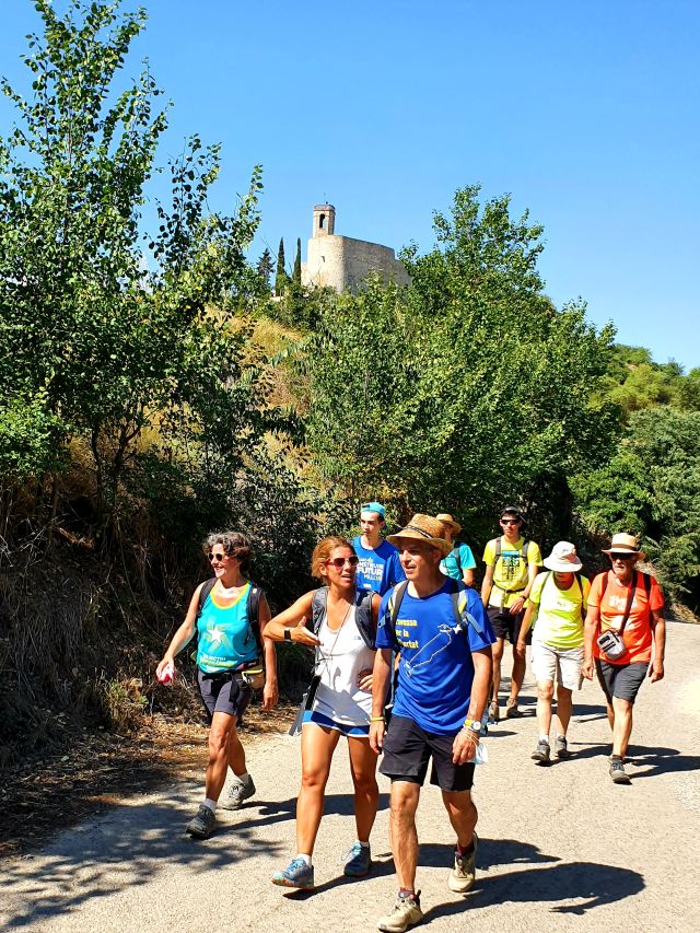 Hi va haver mots participants. alguns varen fer tot el recorregut i altres s’afegien o l’acabaven en diferents punts del trajecte. En aquestes properes imatges podreu veure l’arribada dels caminants a Montfalcó on s’hi va fer una parada ja que hi havia un punt d’avituallament.