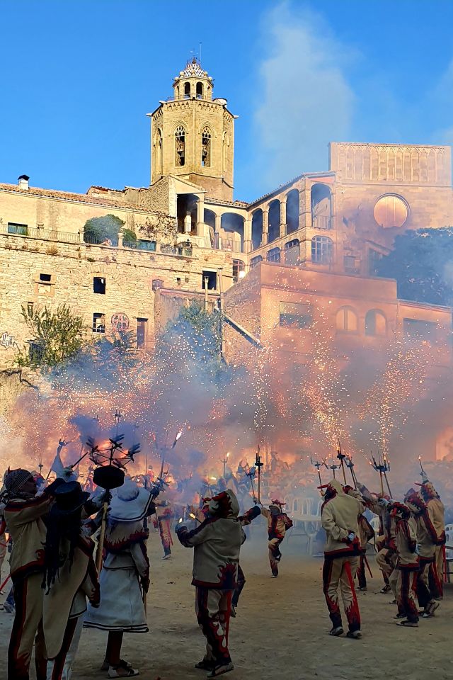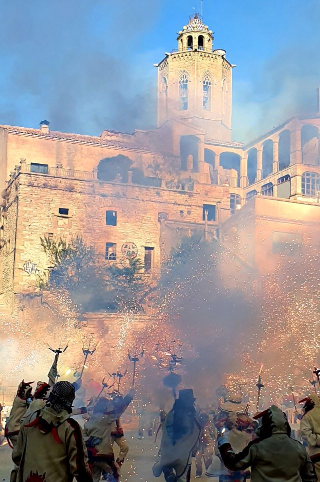 L’Aquelarret 2021 va acabar amb la darrera actuació dels Carranquers. Els petards van ser discrets degut al protagonisme del públic infantil però, com sempre, les imatges amb el campanar al fons, resulten ben atractives.