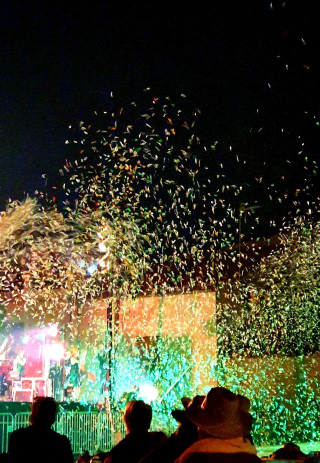Repetint el final de l’Aquelarret, paperets en comptes d’escuma, l’escorreguda acaba amb una pluja de colorins voleiant per damunt el públic.