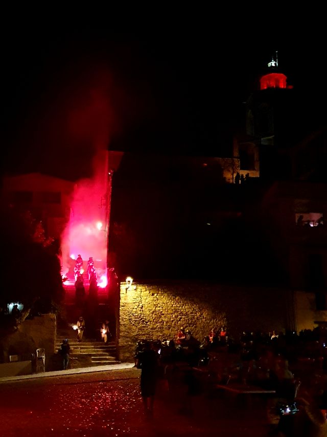 Resultà del tot impactant l’entrada a la plaça dels Carranquers baixant per le escales. Amb aquesta imatge feta abans del Foqueral, queda per tancada la informació sobre aquest atípic Aquelarre. S’agraeix haver-ne pogut gaudir encara que hagi estat amb limitacions.