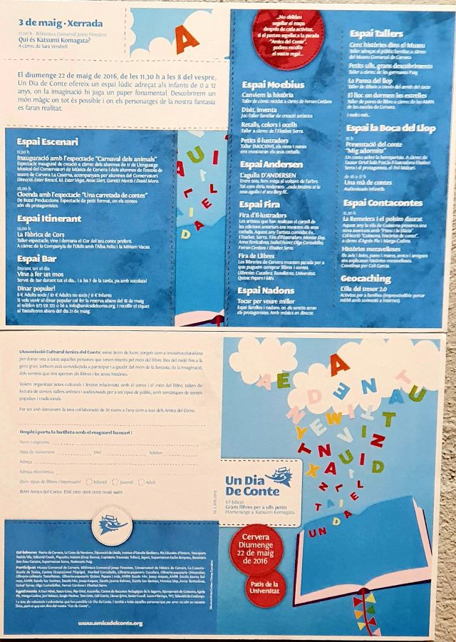 Abans de l’estiu vaig fotografiar l’exposició que estava al Tastalletres i que recollia tots els cartells i altres informacions sobre totes dels edicions del “Dia del conte”. El que no sabia aleshores era que es tractava d’un comiat.