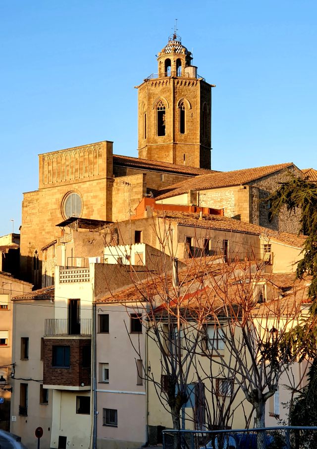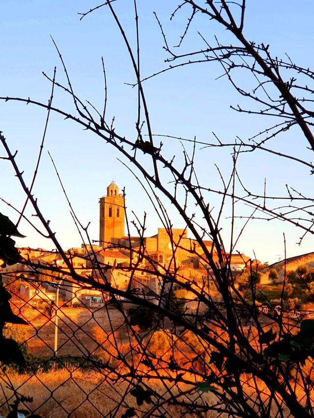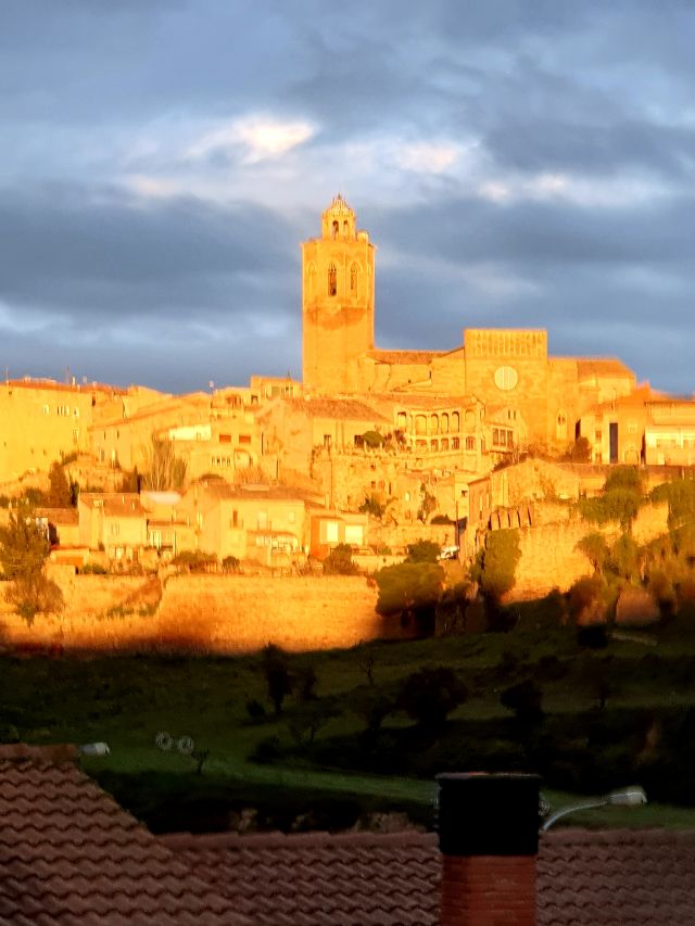 En aquesta imatge el sol, en arraulir-se va deixar, uns pocs segons, un cercle de llum daurada al rosetó de la façana principal de Santa Maria. Resultà del tot sorprenent la manera com brillava…també va durar molt poc aquest enlluernament…