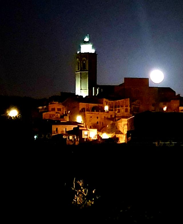 Els diàlegs de la lluna plena i el campanar escampen bellesa en les nits clares i serenes.. Per copsar bé i amb nitidesa aquest espectacle cal anar amb trípode i una bona màquina. N’és especialista el meu veí i amic Ramon Aldomà que ha fotografiat com ningú el nostre estimat cloquer.
