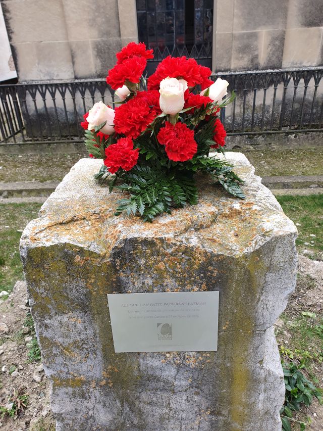 Aquesta pedra, al redós de la que es celebra l’acte, és l’única resta que va quedar del monolit destruït.