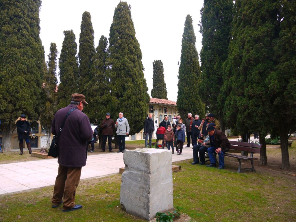 Un altre any. Entrant al cementiri. L’home alt de l’abric fosc és Domènech, pare de la Marta, del francesc i de l’enric, que en aquell temps era alcalde de Cervera.