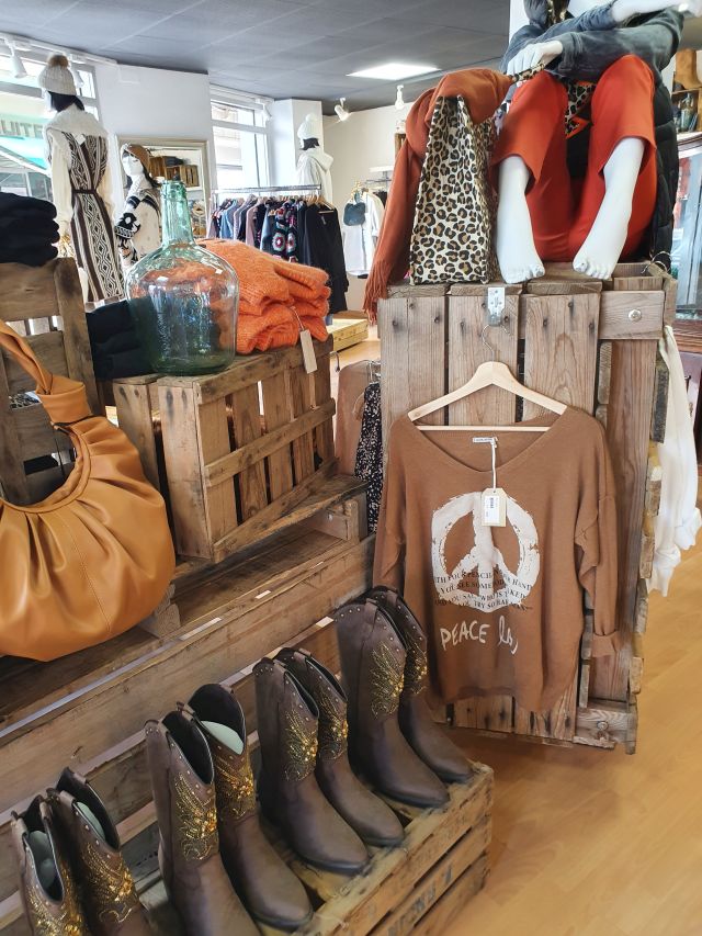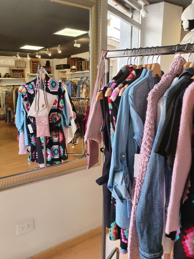 Tota la part davantera de la botiga queda ara dedicada a la roba per la dona. N’hi ha moltíssima, variada i col·locada per colors.