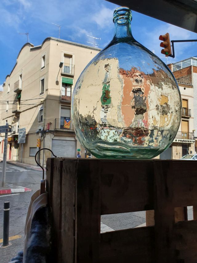 La decoració barreja un cert aire “country” marcat per les tarimes i les caixes de fusta, a les que s’hi afegeix el vidre amb l’ aire decadent que ve marcat per les peces de mobiliari que ja tenen història i que, a més d’embellir l’espai, es fan servir com a expositors.