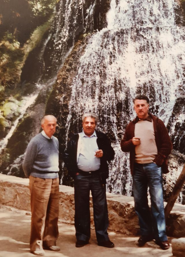 Un altre jove que sempre feia cap a les trobades al forn era l’hereu de la fusteria i tenda de mobles de “cal Oliveretes”, el Joan, fill del Cinto, un home ja més gran que també hi anava moltes vegades. El podeu veure, ja molts anys més tard, en aquesta fotografia. És el de la dreta. El del mig és el “Noi tendre” que vivia tocant a l’església de Sant Cristòfol i no era dels tertulians de joventut. A l’esquerra, el pare.