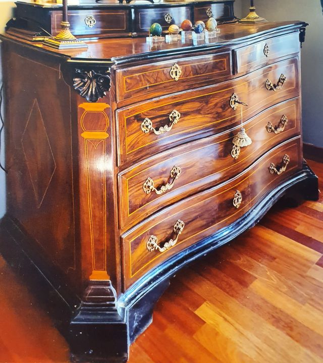 És de suposar que en aquesta casa hi devien intervenir una gran quantitat d’artesans: ferrers, fusters, paletes… Cal tenir un record per Amadeu Pipó, un gran restaurador, que tingué cura de deixar com nous diferents mobles, que amb el pas del temps s’havien anat deteriorant. És el cas d’aquesta calaixera barroca, que podria haver-la aportat la meva besàvia com a part de l’aixovar, ja que venia d’una família d’ebenistes, cal Sobrevila, del carrer Combat. De petita, jo hi jugava molt amb aquest moble posant i treient coses dels calaixos.