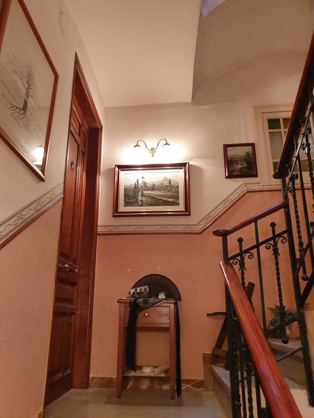 Doncs ara que ja s’ha explicat la història d’aquesta casa del carrer Combat, 24 és el moment de començar a fer el recorregut que van fer totes les persones que van assistir en la visita guiada als espais museitzats del segon i del tercer pis. No es feia el recorregut pel primer pis ja que és la part de la casa on va viure la família fins fa sis anys i mig, en que va morir la de més edat, Ramona Bonet Estela. Com ja s’ha explicat, ella va néixer en aquest habitatge i s’hi va estar fins a punt de complir 100 anys. Atés que tenia el cap perfecte era una enciclopèdia vivent dels fets històrics i familiars.