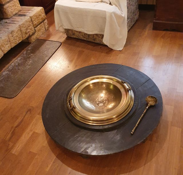 El braser bo, el que estava al menjador, ja que el de la cuina era més senzill, de ferro. Feia molt goig amb el suport de fusta pintada i la peça de metall daurat amb la paleta de conjunt. D’escalfar no ho feia massa. Ple de carbonilla anava fent combustió però, com he dit, si no t’hi posaves al damunt d’escalfor poca. I si t’hi posaves sorien unes marques lletges a les cames, provocades per l’escalfor, que en deien “vaques”.