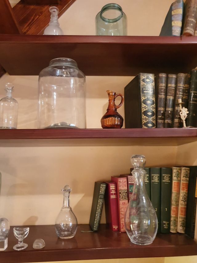 En aquests prestatges s’hi mostraven diferents peces de vidre. cadascuna d’elles amb el seu acabat, tonalitat, forma, ús…
