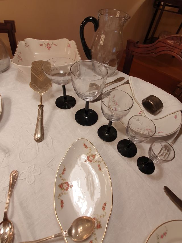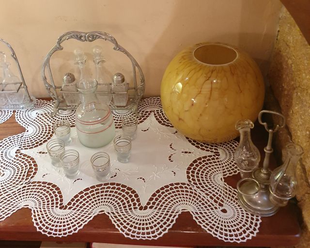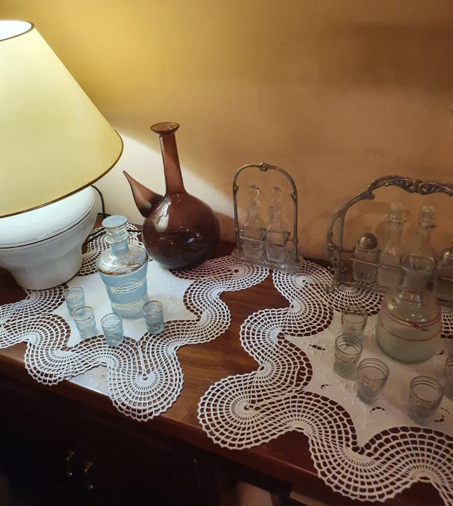 Aquesta cristalleria, en vidre transparent i negre, és molt apreciada per la família ja que Jaume Ximes i Portella ens la va regalar.