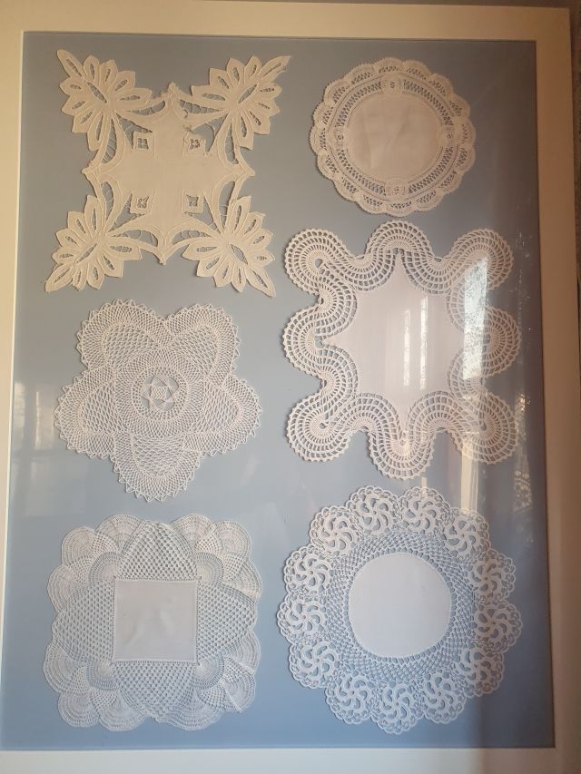 Aquest muntatge s’ha fet escollint sis tapetes fets amb diferents tècniques. encara que aquí no es pugui apreciar el més complicat és el rodó de la filera de dalt.
