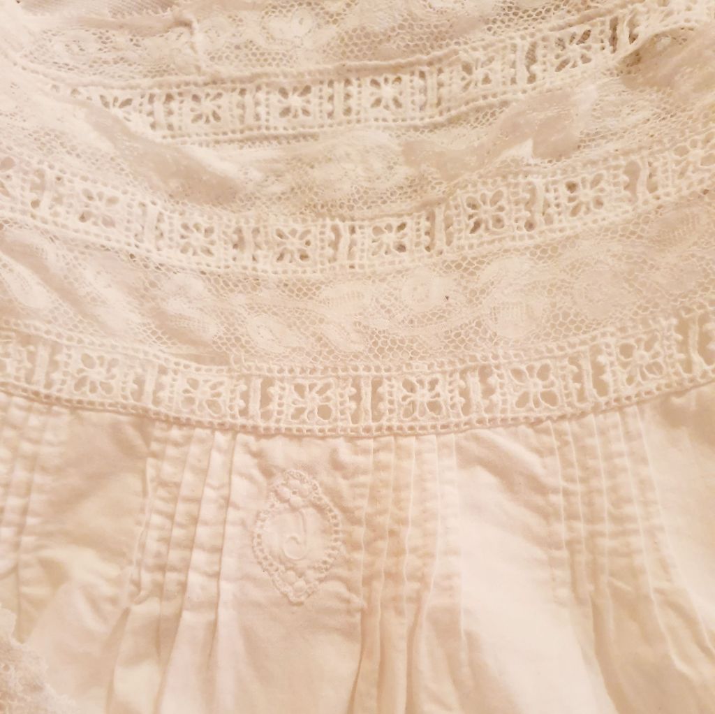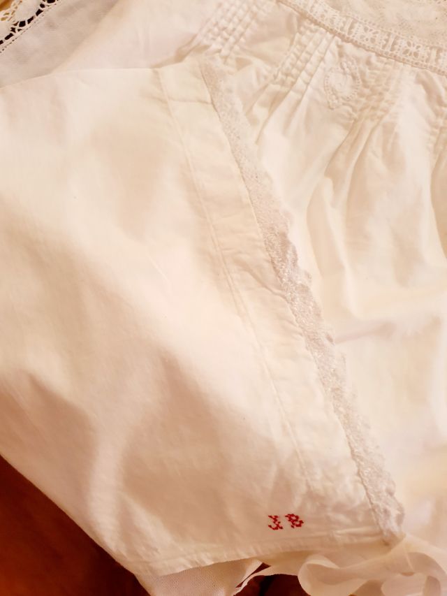 Una preciosa camisa de dormir que va deixar per acabar. Està marcada amb la seva inicial: J, de Josefa.