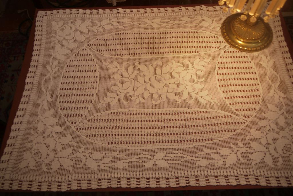 Aquesta fotografia tanca tota la informació sobre “A la recerca del temps perdut”. Es tracta d’una petita obra d’art que va sortir de les mans de Ramona Bonet Estela. Inicialment era un peça per cobrir un llit de matrimoni però ella va tenir l’habilitat de fer-ne una reducció per poder-la posar al llit blanc que han dormit tots els bebés de la família.