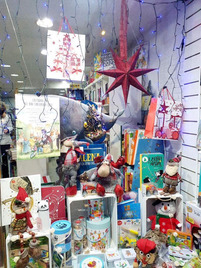 Llibreria Cucafera i la seva aparador molt dedicada als més petits. Farcida de detalls entranyables que tenen molt encant.