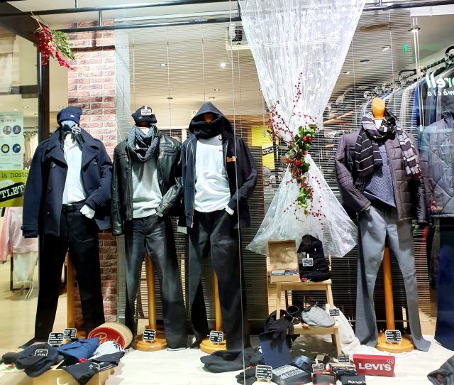 A Sastreria Miret sempre tenen cura dels seus apardors i s’hi esmercen molt. Els conjunt d’home sempre resulten molt atractius i el contrapunt d’aquestes cortines amb estrelles els destaca encara més.