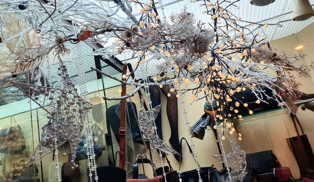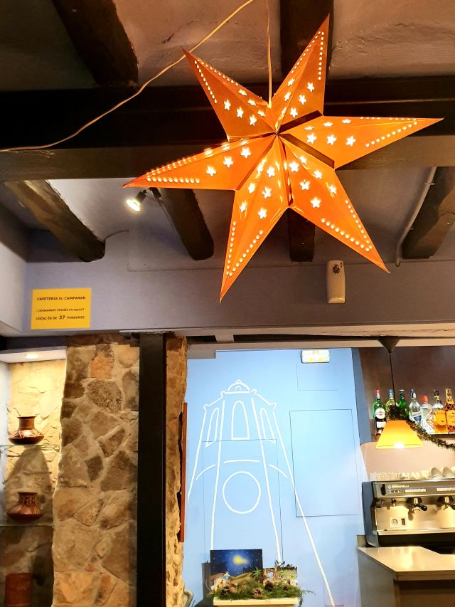 Una bonica estrella daurada, que es veu ben bé passant pel carrer, dóna un toc de llum darrere els vidres.