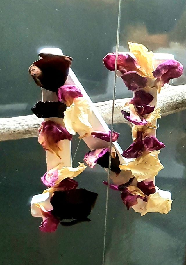 La manera en com estan embellides les lletres, i totes són diferents, dóna com a resultat una composició molt bella. Pètals de rosa…