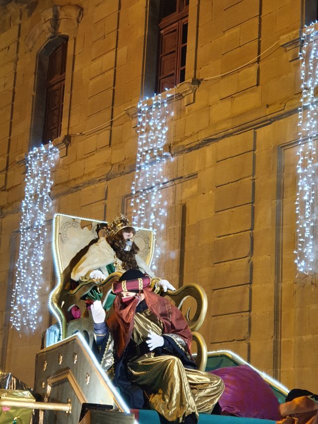 Els tres Reis d’Orient, Gaspar, Melcior i Baltassar han desfilat pels carrers de la ciutat i, en arribar a la plaça Major, han baixat de les seves carrosses per anar a tobar-se amb els infants que els esperaven fent llargues cues per donar-los-hi les seves cartes.