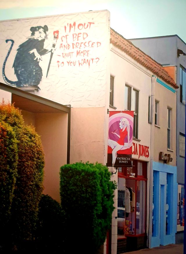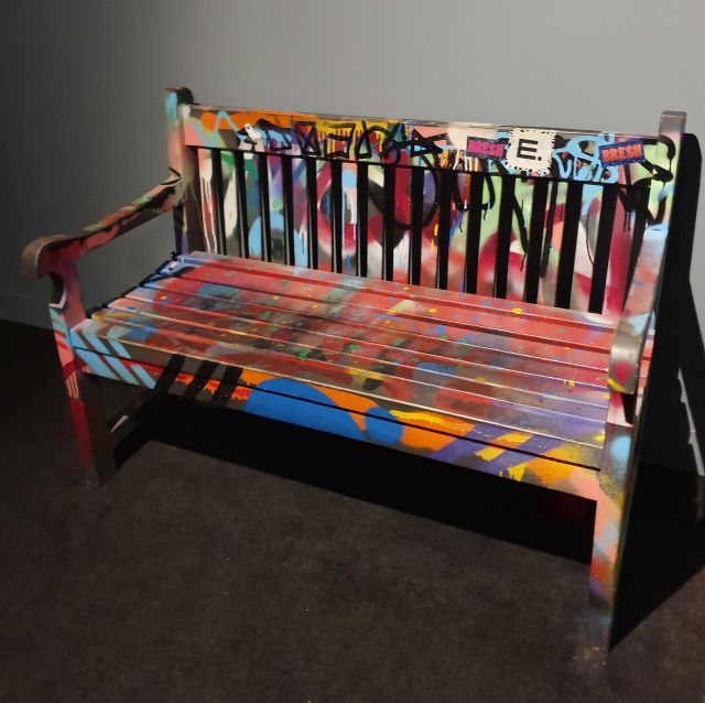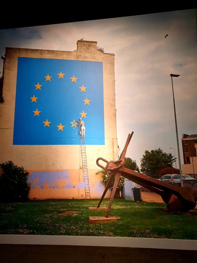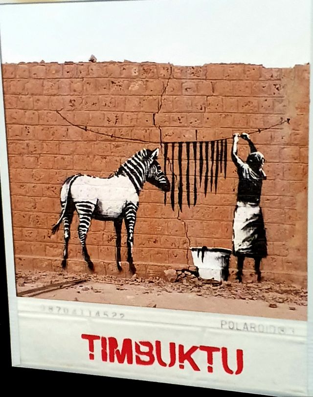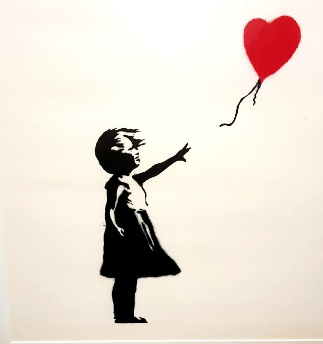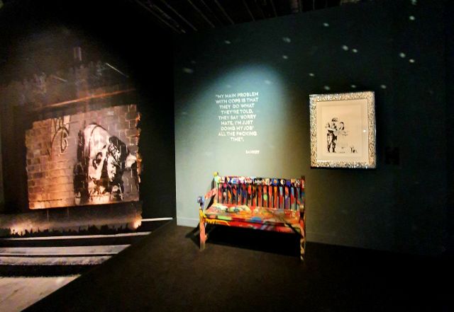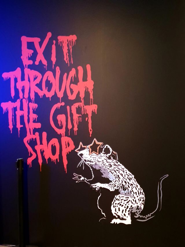 Seguim amb l’exposició de Bansky, el seudonim del grafiter més popular del món, al Museu del Diseny de Barcelona. La majoria dels seus treballs són de caire satíric sobre la política, la moralitat, Les seves obres han sigut molt populars al ser visibles en diferents ciutats de tot el món, especialment a Londres.