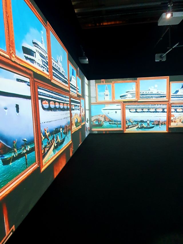 Una reproducció d’un quadre famós en un lloc sòrdit. Hi contrasta.