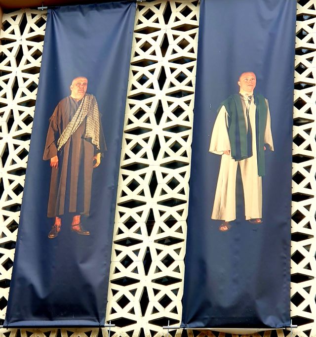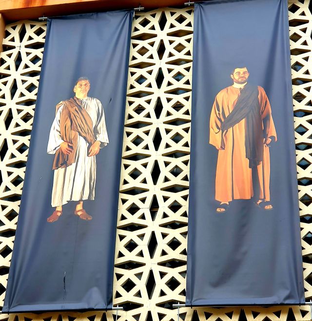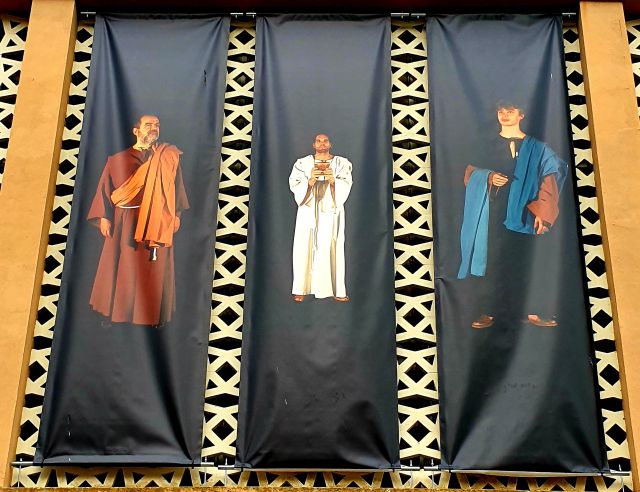 L’any passat es va decidir fer unes importants actuacions. Es van instal·lar diferents lones amb les imatges dels apòstols, en un lloc ben visible des del passeig: a les finestres del Gran Teatre.