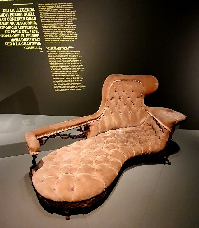 Gaudí va dissenyar pel distribuidor del pis principal de La Pedrera-Casa Milà un mobiliari integrat a l’arquitectura ondulant de l’edifici. Les peces que el conformaven es van dissenyar als anys seixanta i no hi ha fotos del conjunt sencer. Amb tot, l’equip de Restauració i conservació Preventiva del Museu l’ha estudiat i, gràcies a un treball de recerca de més de dos anys, l’ha tornat a muntar tal com es creu que ho estava originàriament.