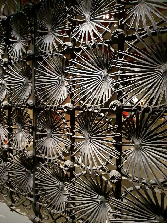 Aquest és el motlle de fulla de margalló que es va fer servir per la construcció de les meravelloses portes de la Casa Vicens. Aquesta casa fou el primer encàrrec d’envergadura que va rebre Gaudí. Es va tractar d’un projecte imaginatiu, modern i innovador, on l’artista utilitzà per primer cop nombrosos elements estructurals, decoratius i simbòlics, que a la llarga van definir el seu llenguatge arquitectònic.