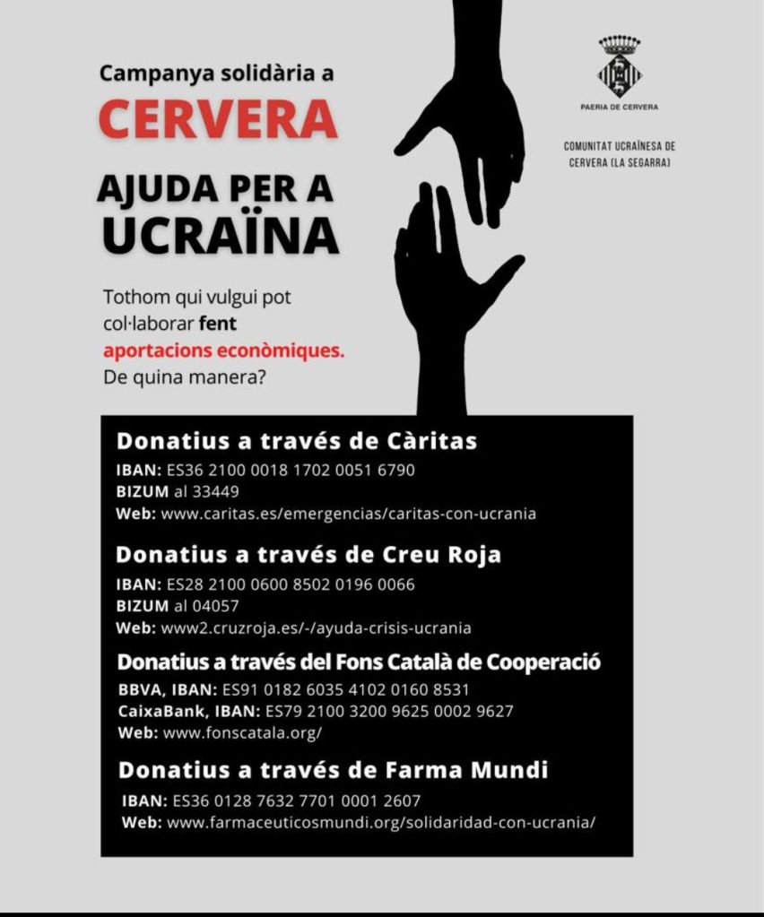 En aquestes properes notificacions teniu la informació del que cal fer per ajudar Ucraïna. Cal ser generosos davant d’un fet tan greu.