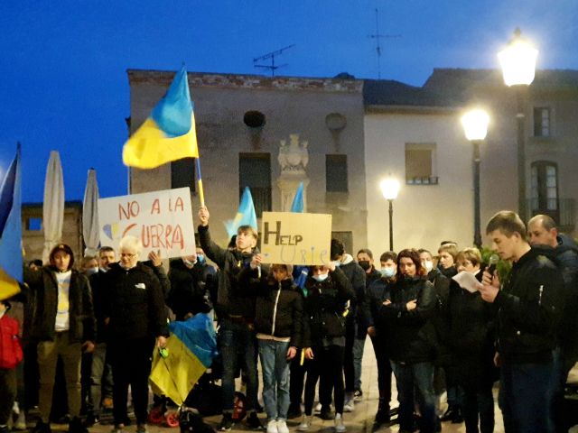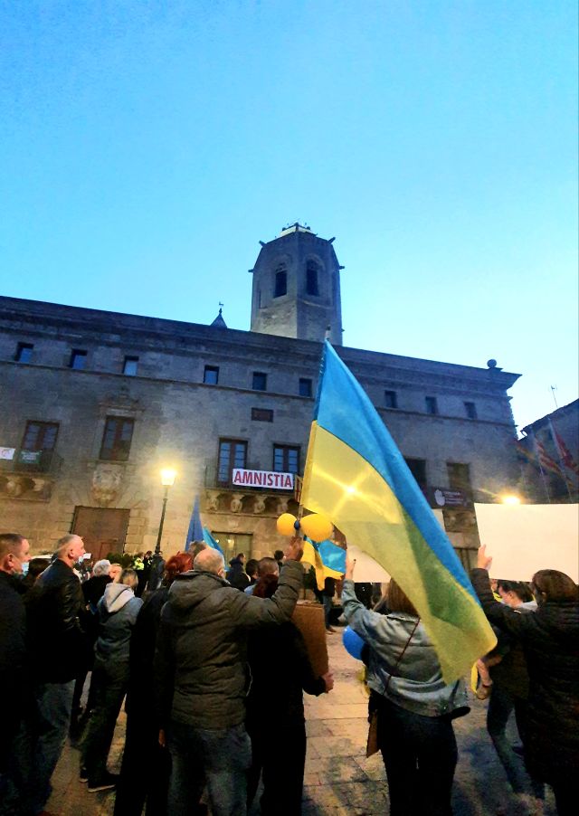 Els membres de la comunitat ucraïnesa de Cervera, que no és molt nombrosa, es van aplegar a la plaça portant la bandera del seu país.