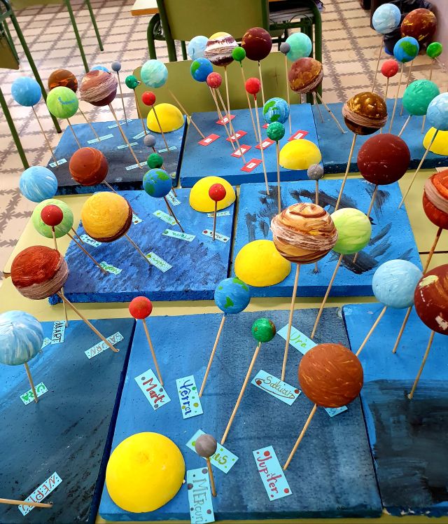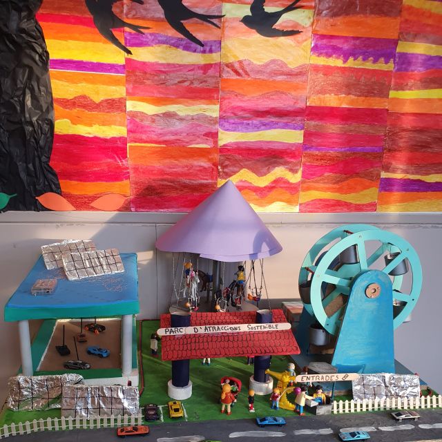 Estem encara a la planta que dóna a la plaça Pius XII i aquests són els atractius muntatges que trobem a la banda esquerra fets per alumnes que acupen aquest espai.