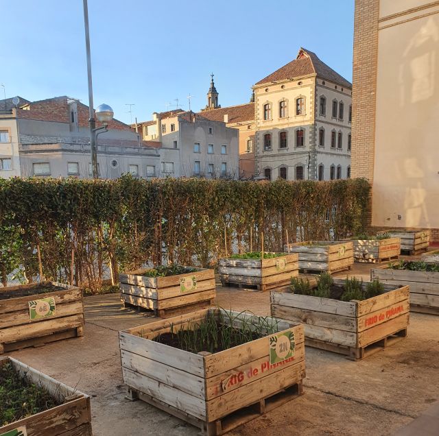 En aquesta zona situada al davant del col·legi s’hi troben un conjunt d’estructures molt adients pel cultiu de diferents espècies. En tenen cura els alumnes.