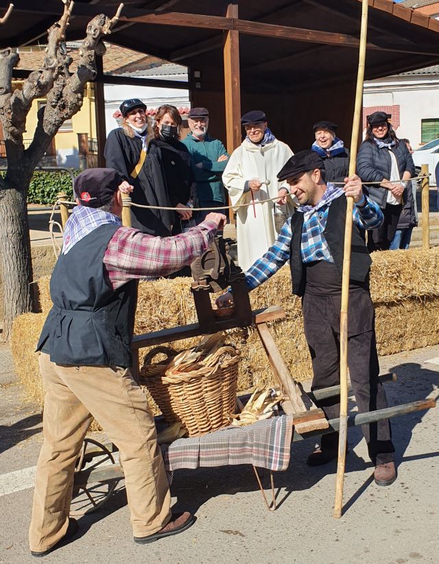 Fent la demostració de com funcionava un estri per pelar el blat de moro.
