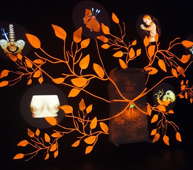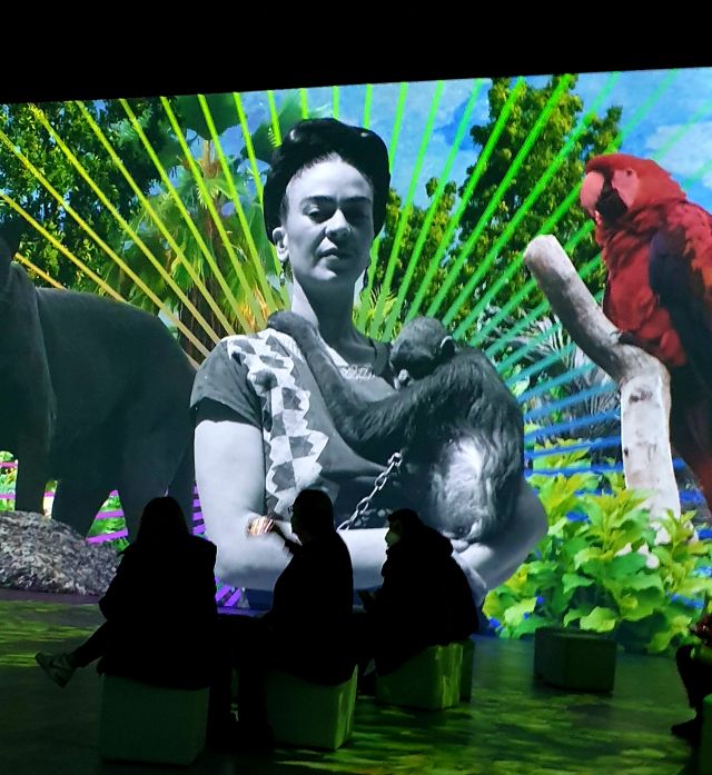 Entrem a la sala gran, on abans hi havia el cinema, i per mitjà de les imatges podem conéixer la vida d’aquesta artista tan influent. La seva vida atrpa, sorprèn i inspira. Va ser una dona capç de sobreposar-se a les desgràcies gràcies a la seva perseverança, fortalesa, rebel·lia i talent, amb una personalitat irrepetible, molt avançada al seu temps.