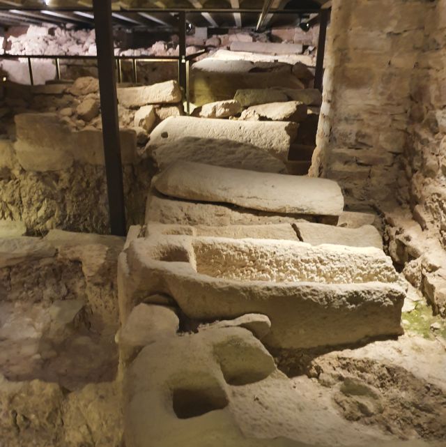 Va ser descoberta arran de les excavacions arqueològiques fetes sota el presbiteri entre el 1968 i el 1976.