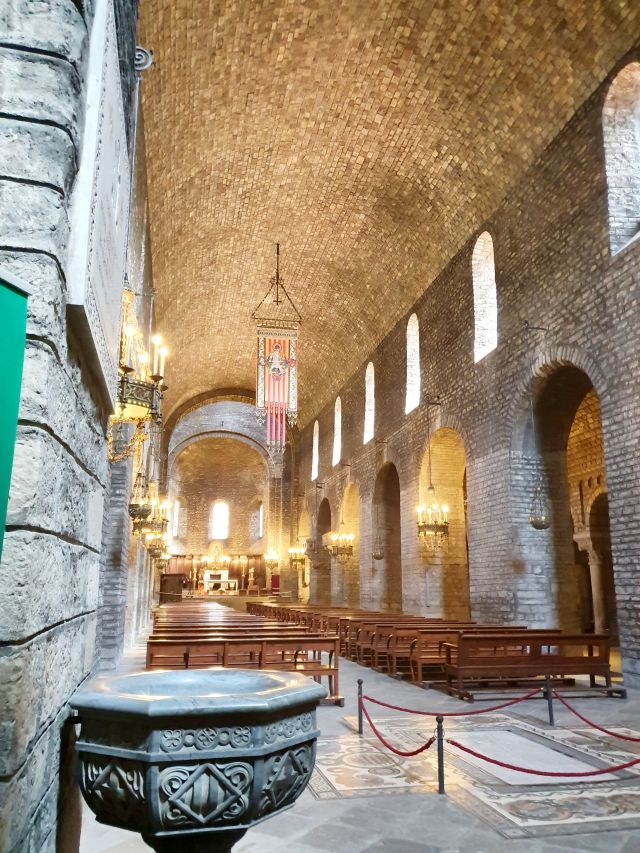 La gran basílica de cinc naus, capçades per un ampli creuer d’on neixen set absis, és en bona part obra de la reconstrucció del segle XII dirigida per l’arquitecte Elies Rogent.