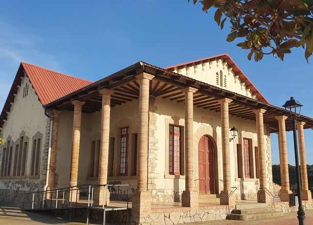 A l’altre extrem del poble les escoles criden molt l’atenció. No s’assemblen en cap de les que es veuen per aquí i sembla que van ser pagades per algun “mecenes”, el mateix que va tenir cura del cementiri.