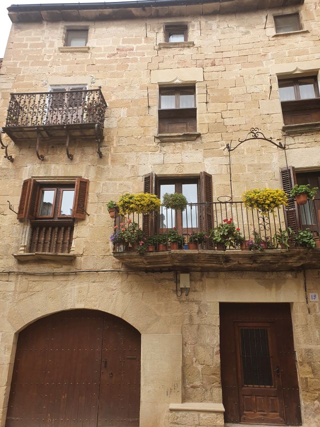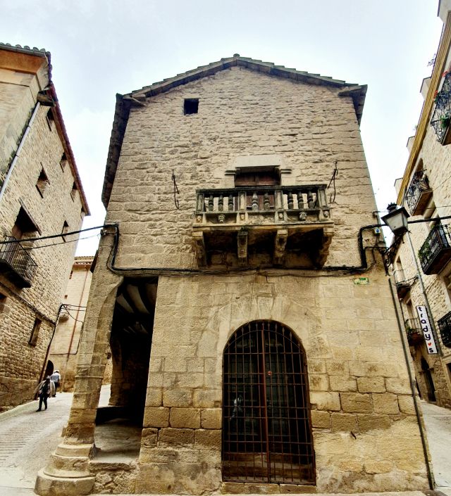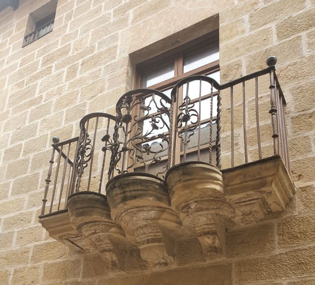 Un altre edifici històric amb un balcó especial fet amb pedra.